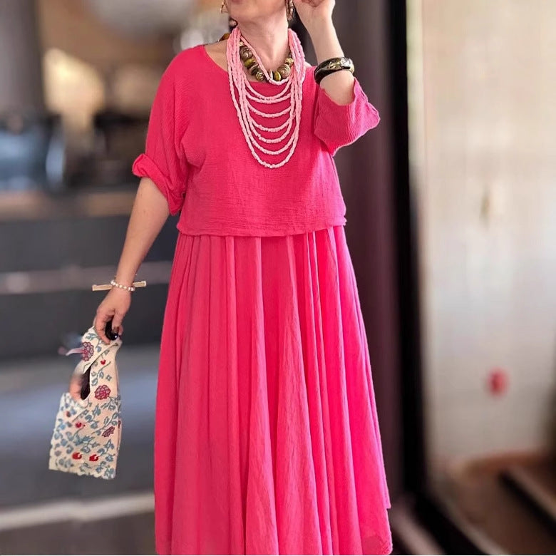 Che tu stia andando a un brunch tra amiche, esplorando la città o cercando un outfit comodo ma raffinato per l’ufficio, RAFFAELLA è la scelta ideale. Questo set con top a maniche corte e gonna fluida scolpisce la silhouette con grazia, valorizzando le curve in modo naturale.